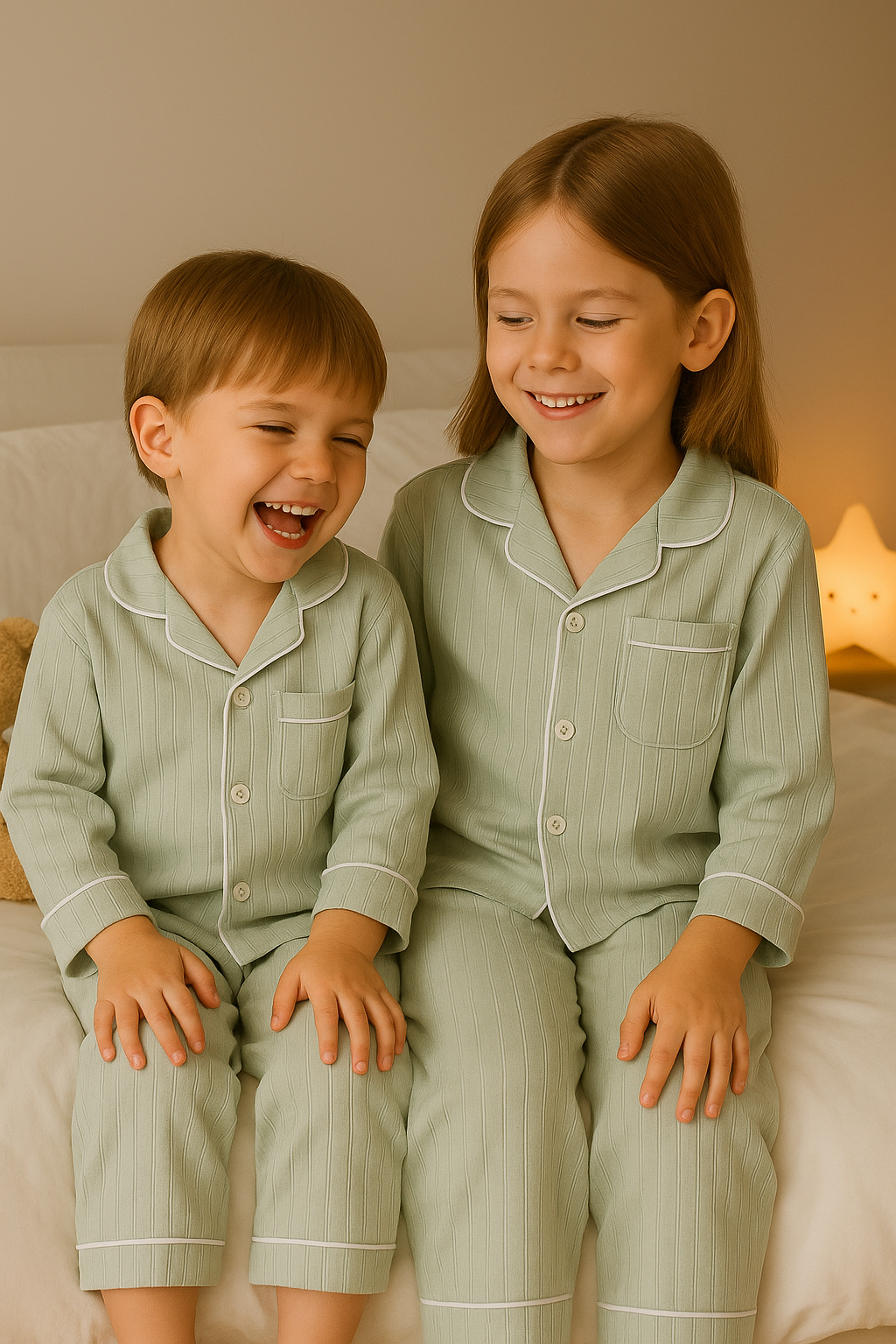 Оливкова піжама Timan — втілення стриманості, елегантності та високої якості. Виконана з 100% бавовни преміум-класу, вона дарує здоровий і комфортний сон. Завдяки крафтовому виробництву кожна модель є унікальною і створена з увагою до дрібниць. Виготовлена в Україні, ця піжама поєднує практичність, стиль і преміальність. Timan — це не просто одяг, це крафтовий бренд, що дарує дітям затишок і турботу.
